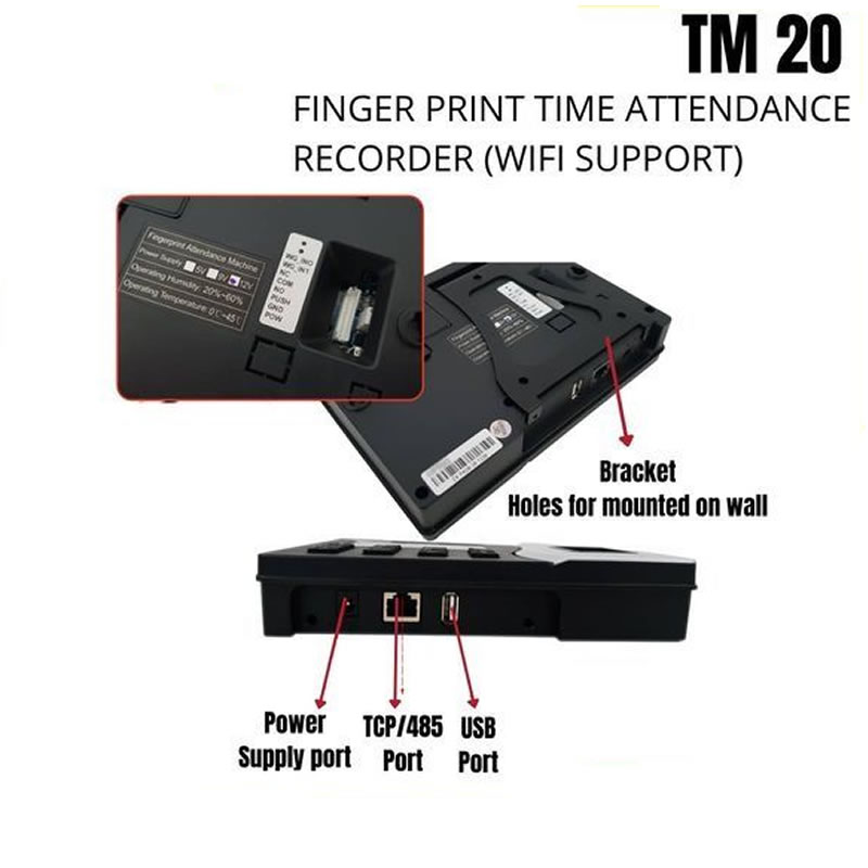TAS 20 fingerprint attendance machine is a reliable and efficient solution for tracking employee attendance. With a fingerprint capacity of 3000 and a record capacity of 200,000, it can handle a large number of users and keep track of attendance records over a long period of time.