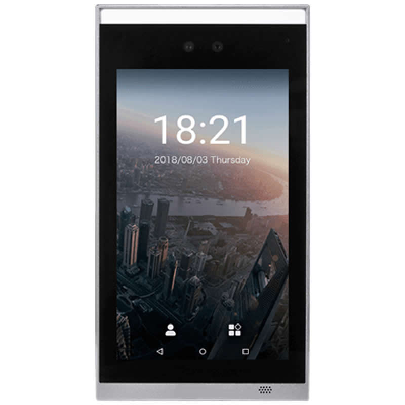 FaceDepot-7B Indoor Facial Recognition Station with Slim and Exquisite design and 7-inch Display Enhanced Visible Light Facial Recognition with Deep Learning built-in, The FaceDepot-7B Indoor Facial Recognition has features as Maximum 10,000 face templates capacity, 7-inch touch LCD, Fingerprint and ID / MF module optional, Dual-camera for real-time face detection, Recognition distance: 0.3 - 3 m, High performance processor, Compatible with external RS232, RS485 and Wiegand reader, TCP / IP, Wi-Fi and USB communication, Compatible with 3rd party barrier, and IP65 ingress protection rating